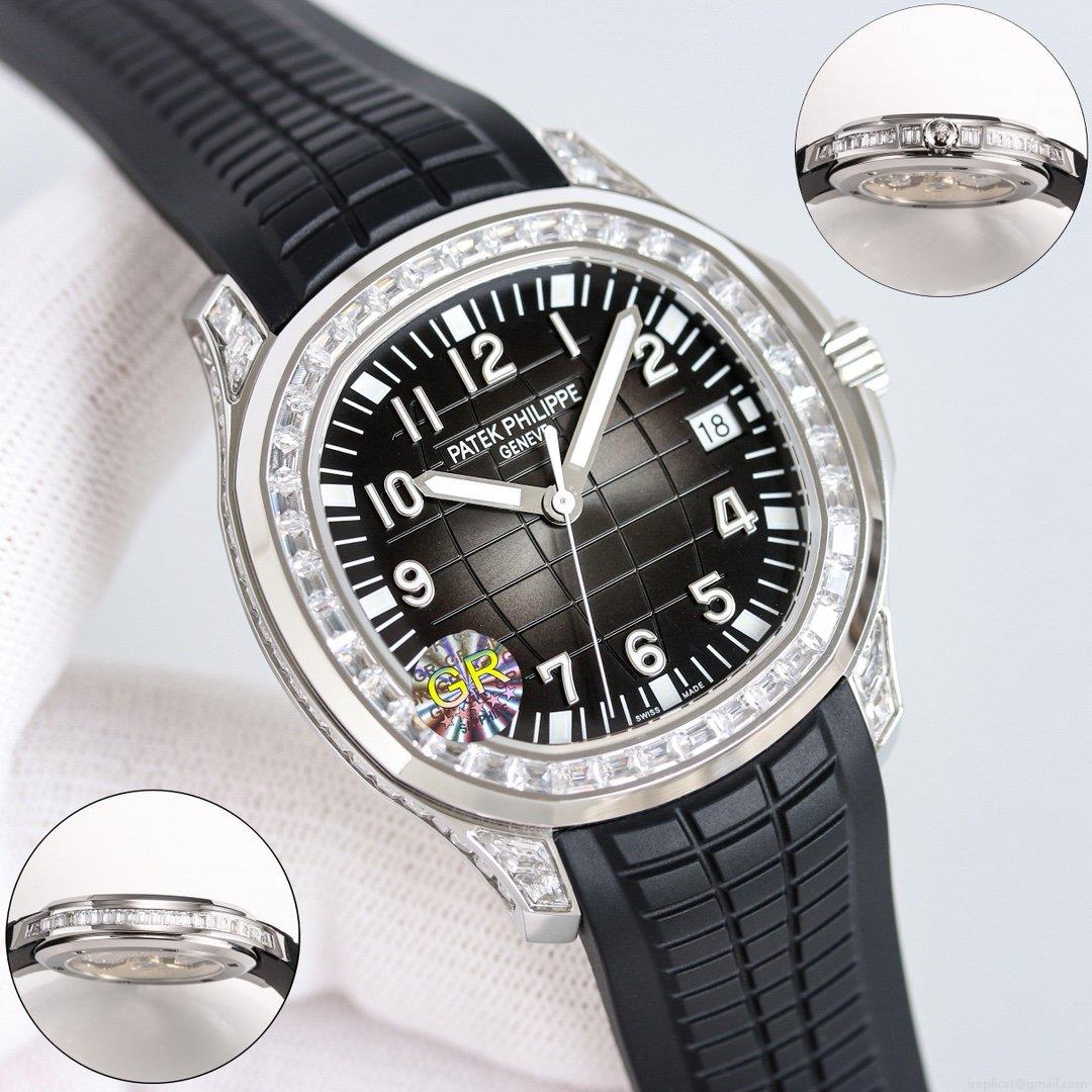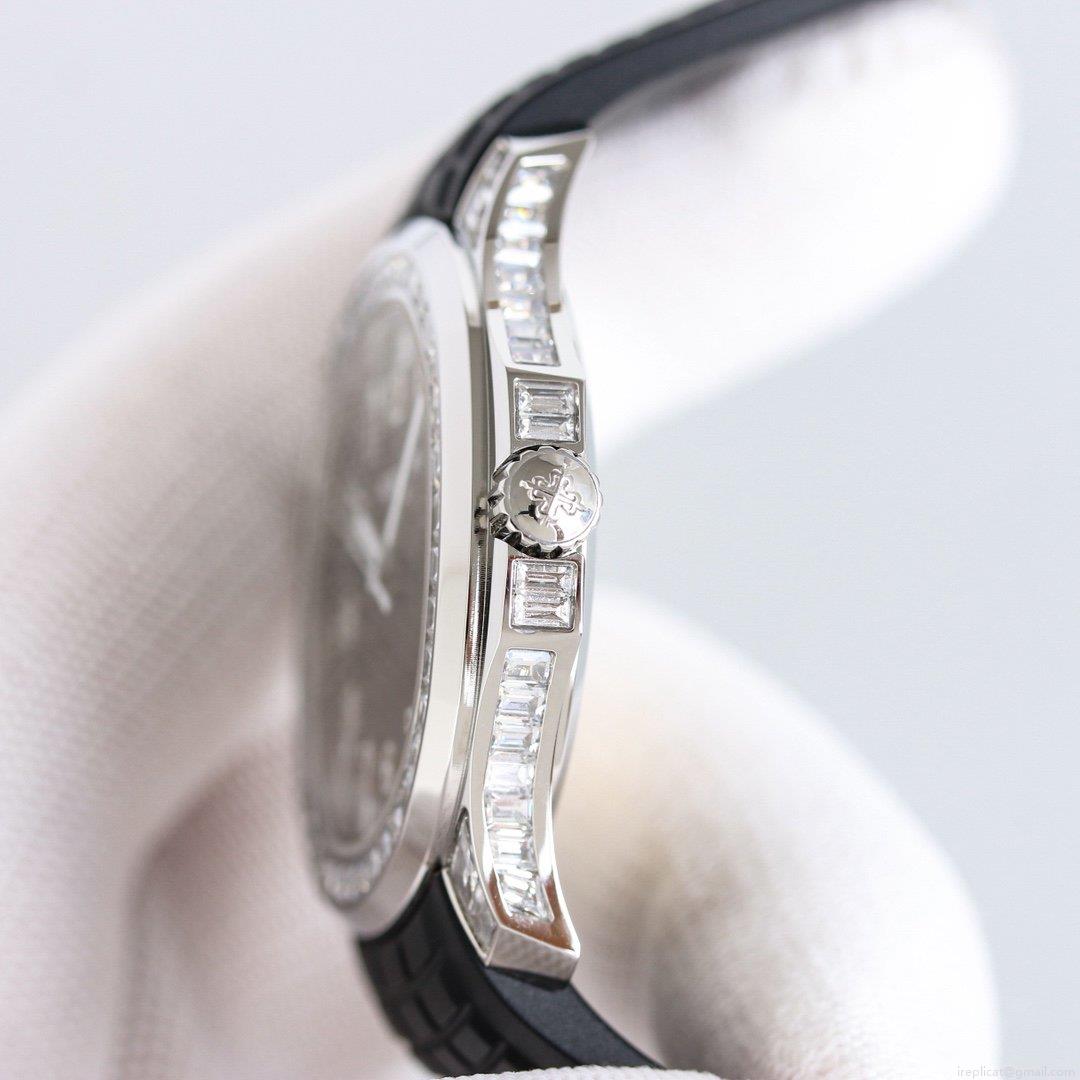 パテックフィリップの象徴的なアクアノートシリーズの精髄を、卓越したレプリカ技術で再現しました。本モデル5167300Gは、洗練された白金ケースに、一粒一粒厳選されたDカラーTカットモアッサナイトを贅沢に散りばめています。